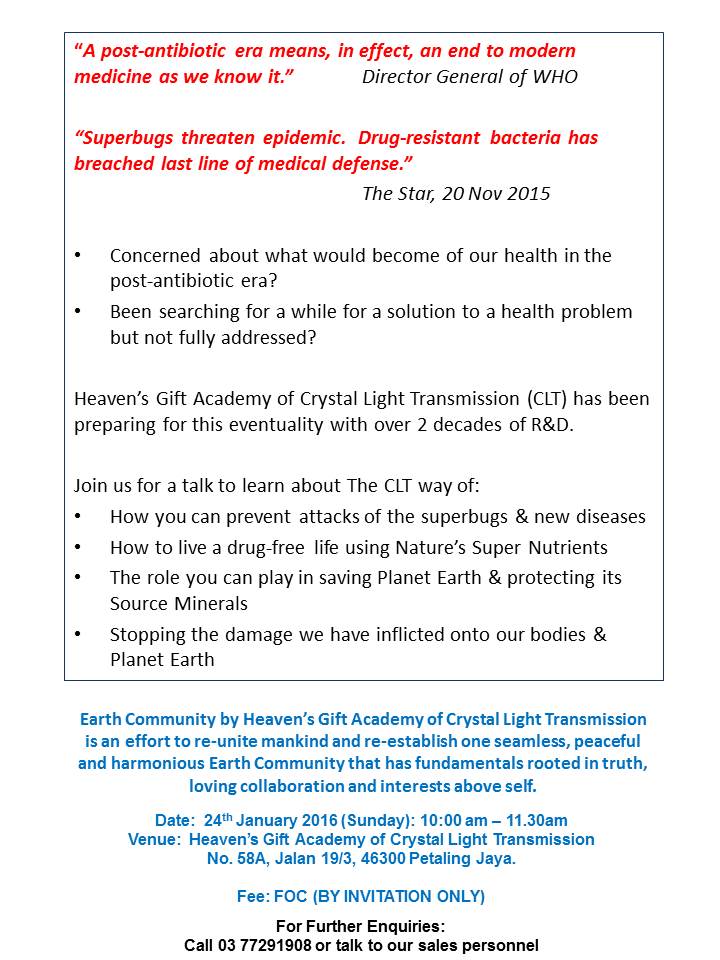 In a 2-Day Workshop entitled ‘Shattering Illusions of Diseases, Ageing & Death, Mastering Foundation of Life’ (May 2014), participants learnt about GENOME ENTROPY and how to halt it using the CLT System.